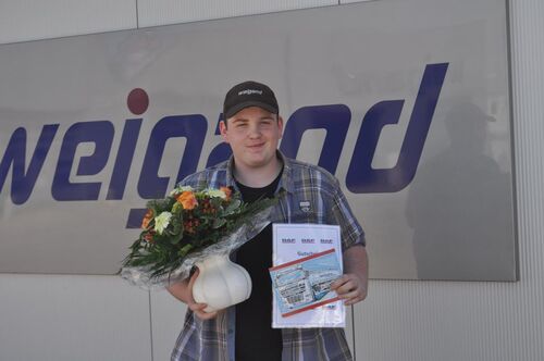 Wir sind sehr stolz über unseren erfolgreichen Ausbildungsjahrgang 2012. Nachdem im Winter schon Christian Burock und Tobias Neuendorf ihre Ausbildung mit guten Noten abgeschlossen haben, ist auch unser jüngster Auszubildender der Firmengeschichte Marco Vorwerk als dritter im Bunde den Beiden am 11.06.2015 mit Bravour gefolgt. Wir gratulieren Marco ganz herzlich und freuen uns sehr, ihn weiter in unserem Unternehmen zu halten und ihn mit einem neuen LKW, einem DAF XF 440 Super Space Cab, zu belohnen.
