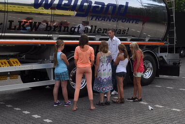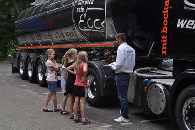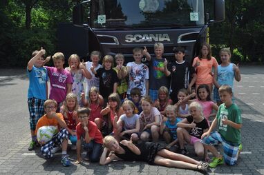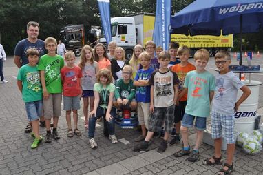 Die Kinder staunen: „Das ist ja nicht einfach nur ein Auto. Da drinnen gibt es einen Kühlschrank, einen Fernseher und sogar ein Bett!“ Dennis Everding, Ausbilder bei der Firma Weigand lacht und erklärt den neugierigen Grundschülern, dass sein Fahrerhaus für ihn nicht nur ein Arbeitsplatz sondern eben auch Küche, Schlaf- und Wohnzimmer ist. Und ein Mädchen strahlt: „Hier würde ich am liebsten gleich einziehen!“
