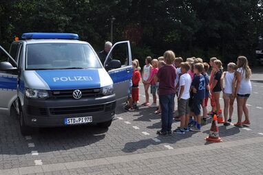 Die SVG lädt im Team mit der Polizei und der Firma Weigand zur praxisorientierten Verkehrserziehung die 4. Klassen der Rosenborn-Grundschule Harsefeld ein.