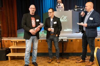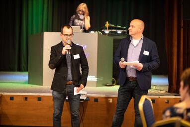 Nach den vielen rührenden Momenten ging es direkt stimmungsvoll weiter, denn es wurde Zeit für eine Premiere: das neue Weigand-Lied. Der Song, der den besonderen Spirit der Marke Weigand widerspiegelt, wurde zusammen mit dem zugehörigen Video präsentiert. Das war ein Moment, der keinen der anwesenden Weigander kalt ließ. Anschließend dankten Stefan und Karsten dem Initiator der Idee, Dennis Everding, für seinen guten Einfall und lobten zusätzlich noch Chris Hein aus Köln, den Komponisten des Songs, der bei der Feier leider nicht dabei sein konnte.