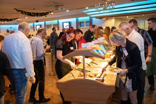 Im Anschluss an die Begrüßungs-Rede folgte der nächste Höhepunkt des Abends: das gemeinsame Festessen. Bei ausgelassener Stimmung wurde ausgiebig geschlemmt und genossen – da waren für jeden Geschmack der passende Gaumenschmaus sowie das eine oder andere bekömmliche Tröpfchen dabei. Und während die Weigander noch ganz entspannt die kulinarischen Köstlichkeiten verdauten, bereiteten sich einige Teilnehmer des Weihnachtsfestes schon für das nächste Highlight vor: Esad Bikic und seine Bandkollegen. Die performten nach dem Essen nämlich nicht nur das Weigand-Lied, sondern auch noch viele andere Hits auf der Bühne, der Tanzfläche und direkt im Publikum. Da hielt es kaum noch einen Weigander auf den Stühlen. Es wurde gelacht, getanzt und bis um ein Uhr in der Frühe gefeiert. Das nennen wir bei Weigand einen gelungenen Abschluss für ein erfolgreiches Jahr 2018. Der Rückblick auf die tolle Weihnachtsfeier und die vielen starken Leistungen im vergangenen Jahr macht nun Lust auf viele gemeinsame Augenblicke und Erfolge in 2019. Doch zunächst wünschen wir allen Weigandern und ihren Familien eine besinnliche und schöne Weihnachtszeit im Kreise ihrer Liebsten sowie einen guten Rutsch ins neue Jahr!