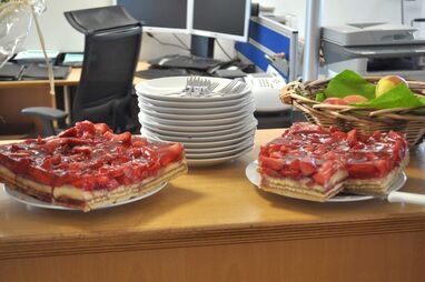 In gemütlicher Atmosphäre kommen anlässlich der Jubiläen Kollegen aus allen Bereichen an einem Freitag zu Kaffee und Kuchen zusammen. Ein Fest für die Loyalität und das gute Wir-Gefühl als Basis für die Zufriedenheit jedes einzelnen Mitarbeiters.
