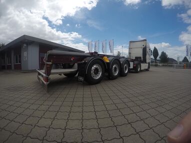 Für den Transport unserer und fremder 20’-Tankcontainer haben wir nun in weitere ADR-Fahrgestelle der Firma van Hool investiert. Die Fahrgestelle sind mit einer modernen leistungsstarken Vogelsang-Drehkolben-Pumpe ausgestattet und können somit ohne fremde Hilfe technische und chemische Produkte mit einer Förderleistung von bis zu 121 m3/h be- und entladen.
