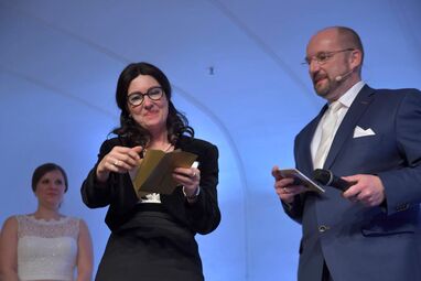 Genau diese Philosophie zur Nachwuchsförderung wurde am Donnerstag, den 1. März 2018, mit dem VR-Award im Bereich „Ausbildung und Karriere“ gewürdigt. Der Preis wurde von der VerkehrsRundschau auf der Gala im Hotel "Bayerischer Hof" an Stefan Weigand und seine Frau Ina, die als Personalchefin in dem Familienunternehmen tätig ist, übergeben. Eine Fachjury bestehend aus Fachredakteuren der VerkehrsRundschau sowie namhaften Experten aus den jeweiligen Bereichen hatte zuvor die Nominierungen bekanntgegeben. Aber erst am Abend der Preisübergabe wurde der Gewinner offiziell verkündet. Ute Hennings, Beauftragte für Diversity- und Talentmanagement bei der Sparkassen-Management-Akademie, übergab den Preis an Stefan Weigand. Für den Unternehmer, für den die Betreuung der Azubis einen wichtigen Stellenwert einnimmt, war dies eine gelungene Überraschung. Er ist motiviert, genauso weiterzumachen und der Betreuung der Azubis auch weiterhin einen hohen Stellenwert zuzuweisen.