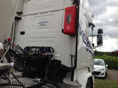 Beeindruckende Neuzugänge gibt es im Weigand-Fuhrpark zu vermelden: Ein Scania R 450, ein Mercedes Benz 1843 LS und ein MAN TGX 18440 XXL tragen ab sofort das Weigand-Logo und erweitern das Angebot im noch jungen Geschäftszweig der ADR-Transporte. Die neuen LKW überzeugen mit ausgefeilter Pumpentechnik, u.a. mit einer eigenen Fahrzeugpumpe nur für ADR und Abfallprodukte, und ermöglichen so eine selbständige Beladung aus dem Tankbehälter.