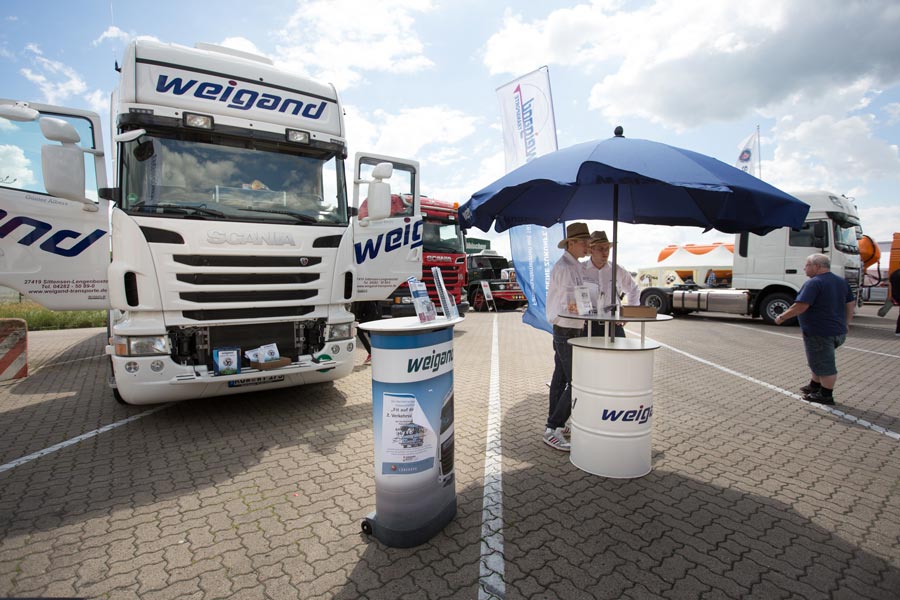 Die Firma Weigand präsentierte sich beim ProLKW-Tag mit engagierten Mitarbeitern und einem weltmeisterlichen Gewinnspiel