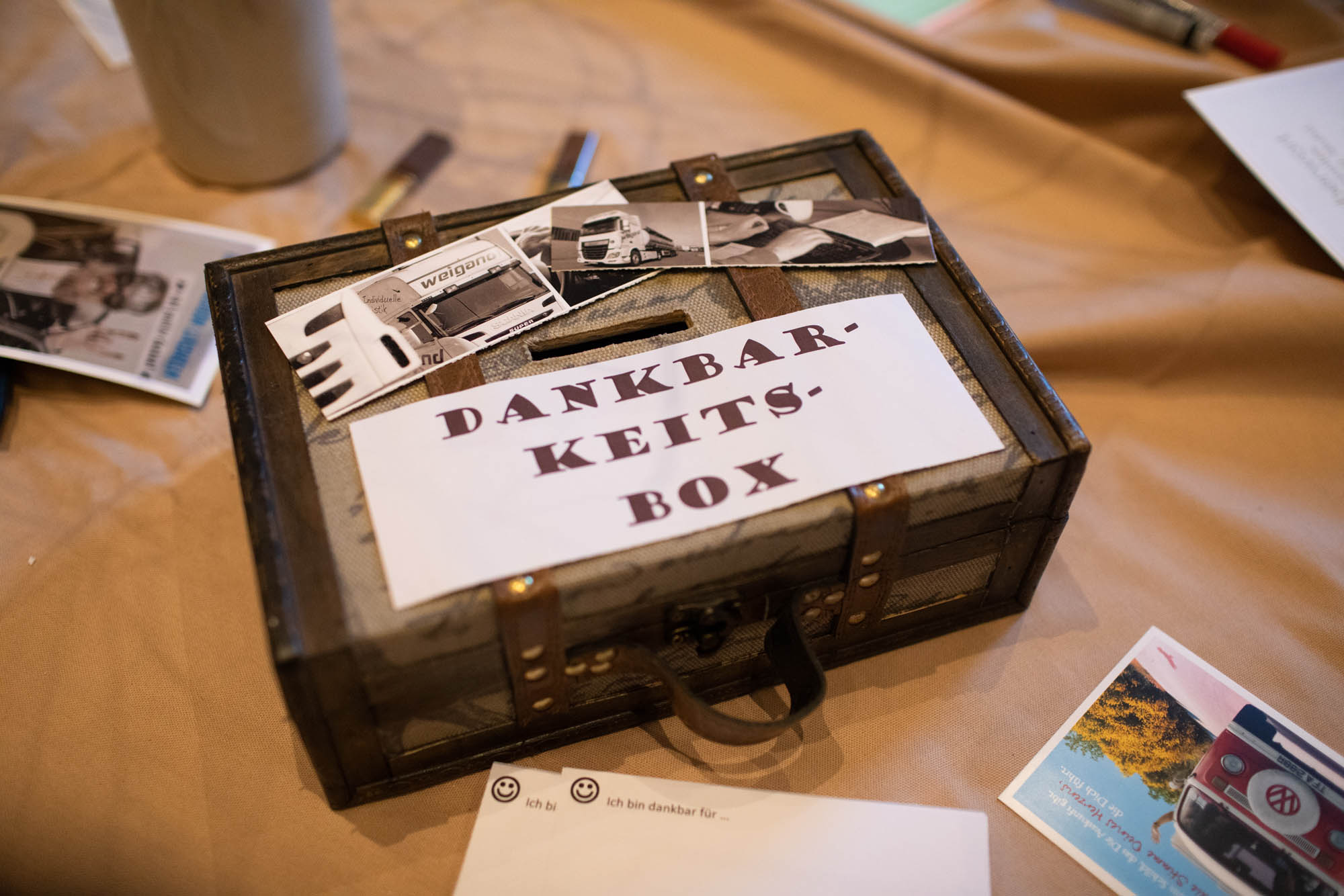 In seinen abschließenden Worten kam Stefan Weigand noch einmal zurück auf das Thema Dankbarkeit. Er bat seine Mitarbeiter, achtsam mit sich selbst umzugehen und diese Achtsamkeit mit an ihren Arbeitsplatz zu nehmen. Die Dankbarkeit ist nicht nur die größte aller Tugenden, sondern auch die Mutter von allen. Um dieses wichtige Thema in den Köpfen zu verankern, hat er sich etwas Schönes ausgedacht: Immer freitags wird er im Betrieb eine Dankeschön-Notiz aus der gemeinsam gefüllten Dankbarkeits-Box veröffentlichen – um alle daran zu erinnern, warum sie hier sind und gemeinsam an einem Strang ziehen.