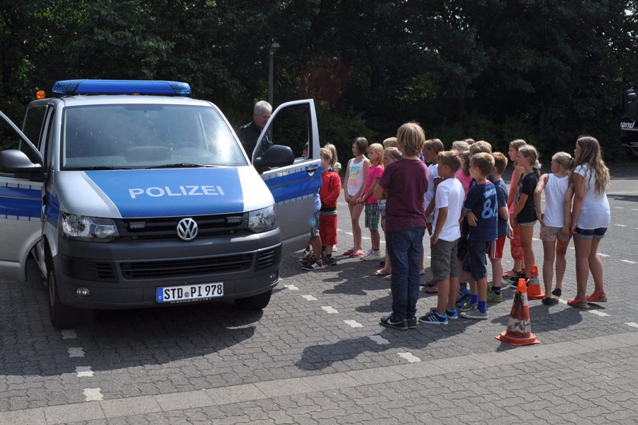 Die SVG lädt im Team mit der Polizei und der Firma Weigand zur praxisorientierten Verkehrserziehung die 4. Klassen der Rosenborn-Grundschule Harsefeld ein.