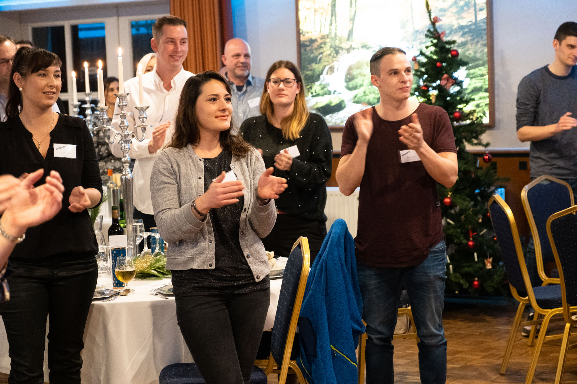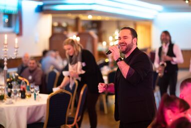 Im Anschluss an die Begrüßungs-Rede folgte der nächste Höhepunkt des Abends: das gemeinsame Festessen. Bei ausgelassener Stimmung wurde ausgiebig geschlemmt und genossen – da waren für jeden Geschmack der passende Gaumenschmaus sowie das eine oder andere bekömmliche Tröpfchen dabei. Und während die Weigander noch ganz entspannt die kulinarischen Köstlichkeiten verdauten, bereiteten sich einige Teilnehmer des Weihnachtsfestes schon für das nächste Highlight vor: Esad Bikic und seine Bandkollegen. Die performten nach dem Essen nämlich nicht nur das Weigand-Lied, sondern auch noch viele andere Hits auf der Bühne, der Tanzfläche und direkt im Publikum. Da hielt es kaum noch einen Weigander auf den Stühlen. Es wurde gelacht, getanzt und bis um ein Uhr in der Frühe gefeiert. Das nennen wir bei Weigand einen gelungenen Abschluss für ein erfolgreiches Jahr 2018. Der Rückblick auf die tolle Weihnachtsfeier und die vielen starken Leistungen im vergangenen Jahr macht nun Lust auf viele gemeinsame Augenblicke und Erfolge in 2019. Doch zunächst wünschen wir allen Weigandern und ihren Familien eine besinnliche und schöne Weihnachtszeit im Kreise ihrer Liebsten sowie einen guten Rutsch ins neue Jahr!