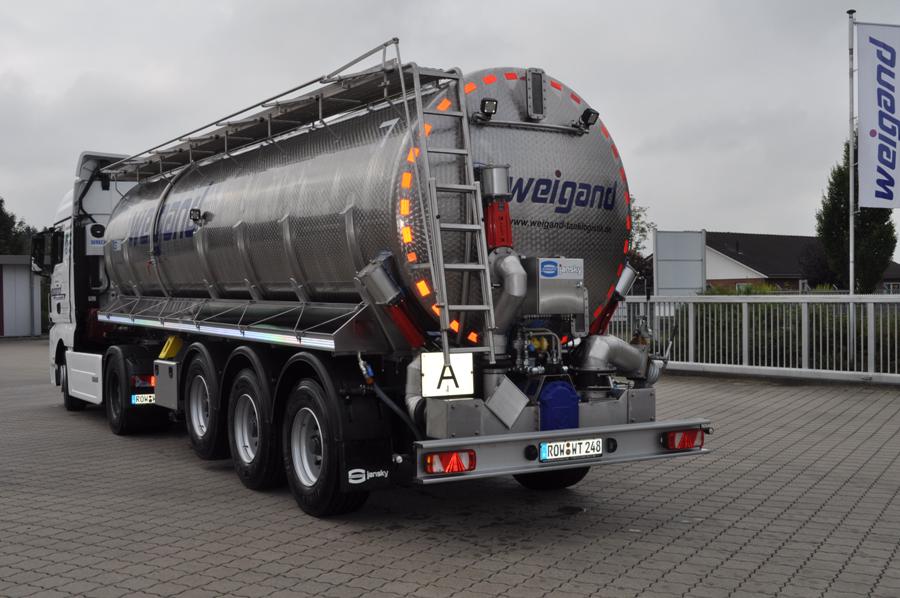 Die Entscheidung für das Spezialfahrzeug mit seinem 30.000 Liter fassenden Edelstahltank wurde, wie immer bei Weigand, maßgeblich von den Faktoren Betriebssicherheit und Umweltschutz mitbestimmt.
