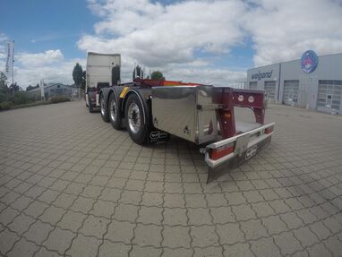 Für den Transport unserer und fremder 20’-Tankcontainer haben wir nun in weitere ADR-Fahrgestelle der Firma van Hool investiert. Die Fahrgestelle sind mit einer modernen leistungsstarken Vogelsang-Drehkolben-Pumpe ausgestattet und können somit ohne fremde Hilfe technische und chemische Produkte mit einer Förderleistung von bis zu 121 m3/h be- und entladen.