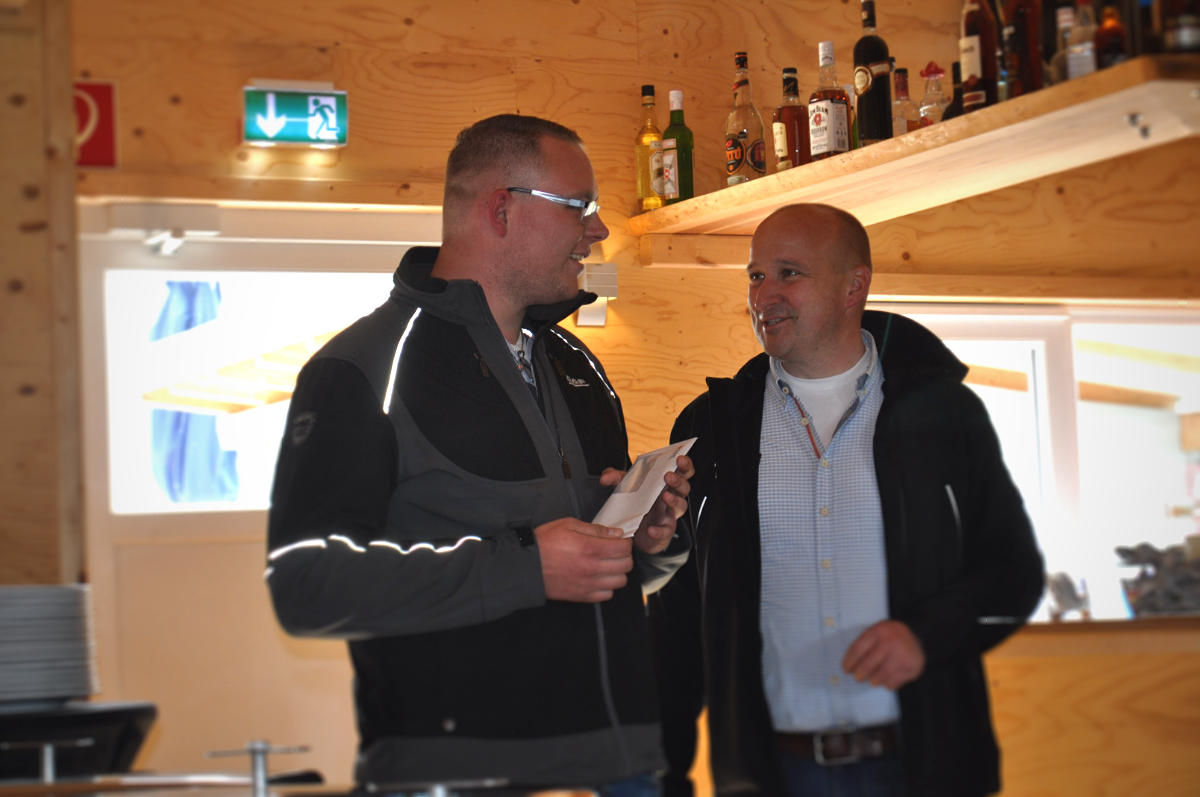 Gemeinsam starteten 34 Mitarbeiter um die Mittagszeit vom Weigand-Betriebsgelände in Richtung Motodrom, um dort nach einem kurzen Check-in ihre Sturmhauben in Empfang zu nehmen. Auf dem Gelände des Motodroms versammelten sich die Weigander um die Grillhütte, wo sie von Stefan Weigand bereits mit ersten kühlen und selbstverständlich alkoholfreien Getränken in Empfang genommen wurden. In gemütlicher Runde wurde dabei zunächst ein Weigand-Jubilar geehrt: So erhielt Sebastian Kühn zum 5-jährigen Betriebsjubiläum seine Weigand Plus-Karte. „Mir hat die Atmosphäre in und um der Grillhütte gefallen. Da hat man gesehen, was für ein tolles Team wir doch sind“, verkündete der Jubilar nach dem Fest in der Facebook Gruppe.