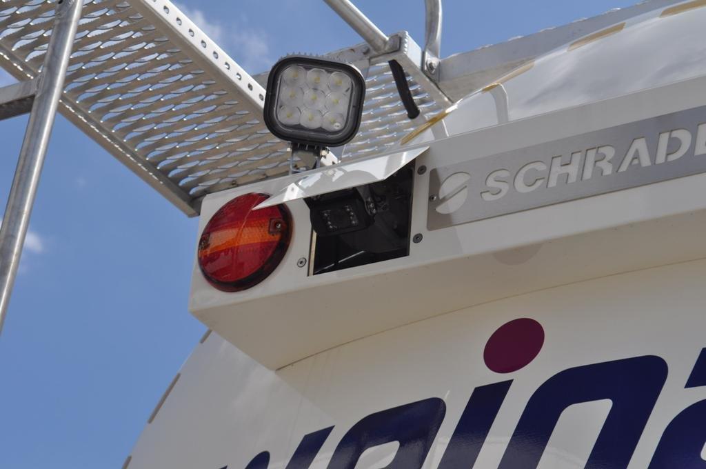 Aber auch im Bereich der Fahr- und Ladesicherheit zeigen sich die Neuzugänge vorbildlich, denn alle modernen Sicherheits-Assistenz-Programme sind mit an Bord: ESP, Spurhalte- und Aufmerksamkeits-Assistenten sowie eine aktive Brems-Hilfe unterstützen den Fahrer in kritischen Situationen. Und mit pneumatischen Klappgeländern sowie der Möglichkeit der TKW-Bedienung von unten bei der Entladung erfüllen auch die modernen Schrader-Auflieger maximale Sicherheits-Standards vor Ort beim Kunden. Dieser wird auch zu schätzen wissen, dass die Lieferpapiere direkt auf den Drucker im LKW gesendet werden, was eine stets korrekte Dokumentation der Lieferkette garantiert.