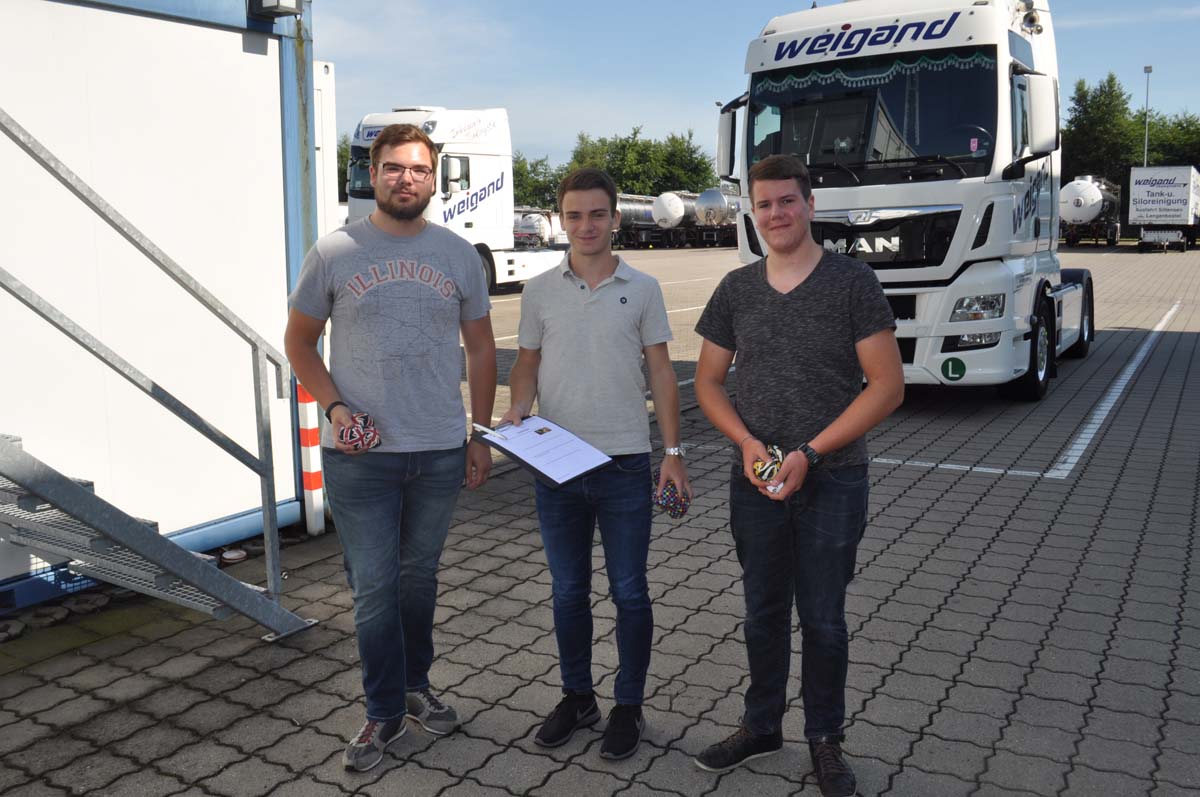 In diesem Jahr wurden die drei Azubis vom Chef persönlich, also von Stefan Weigand, Mitinhaber und Geschäftsführer von Weigand-Transporte, begrüßt und in den Betrieb eingeführt. Zwei Auszubildende werden zum Berufskraftfahrer ausgebildet und verstärken bald die weiße Flotte der Weigander, ein junger Mann erlernt den Beruf des Kaufmanns für Spedition und Logistikdienstleistung und wird das Team im Büro unterstützen.